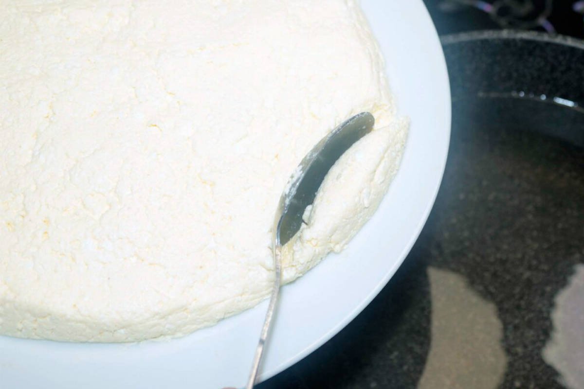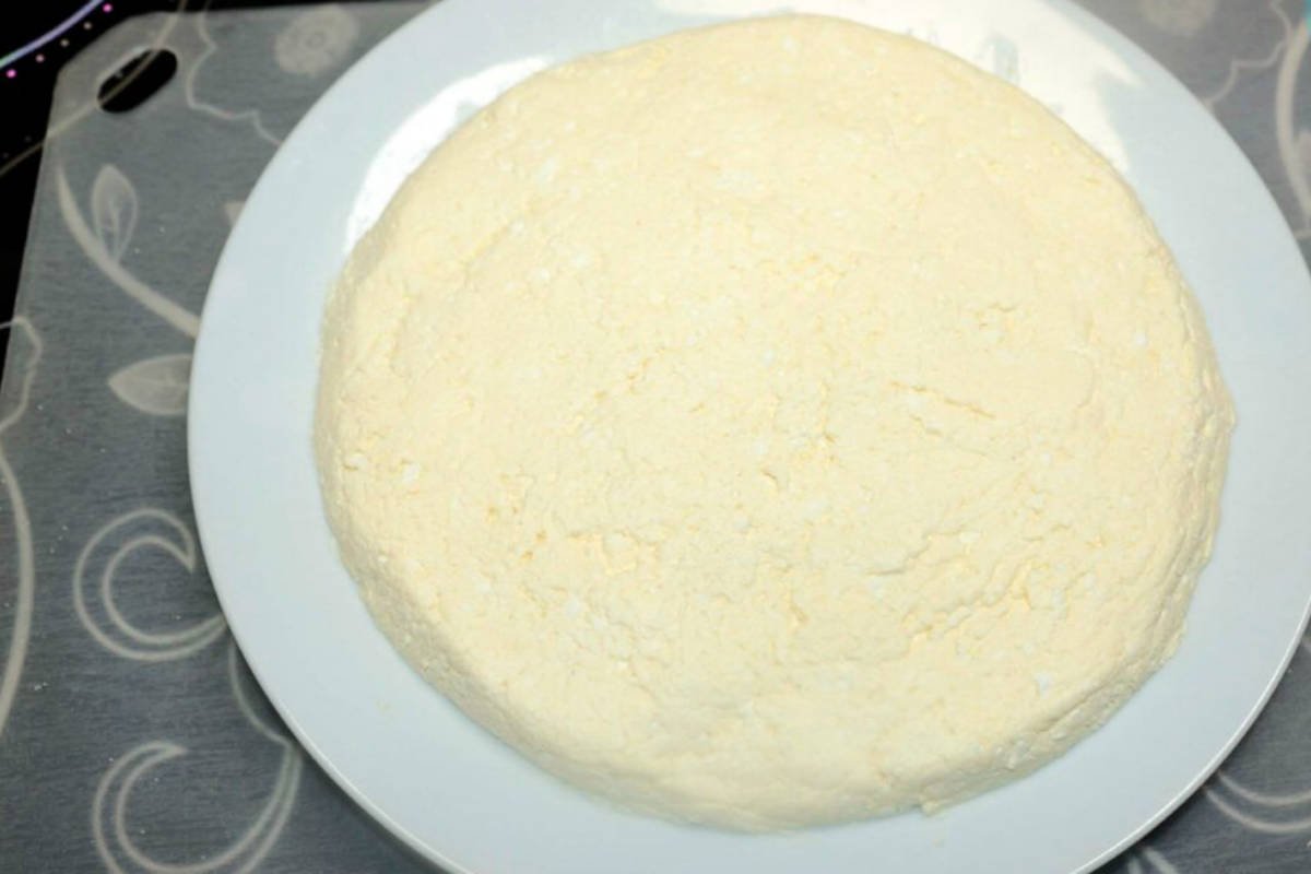 Krok 3 – Weź płaski talerz, a następnie rozprowadź ciasto równomiernie po jego powierzchni. Warstwa ciasta powinna mieć ok. 1,5-2 cm grubości. W między czasie zagotuj wodę w garnku i posól ją jedną łyżeczką soli.
