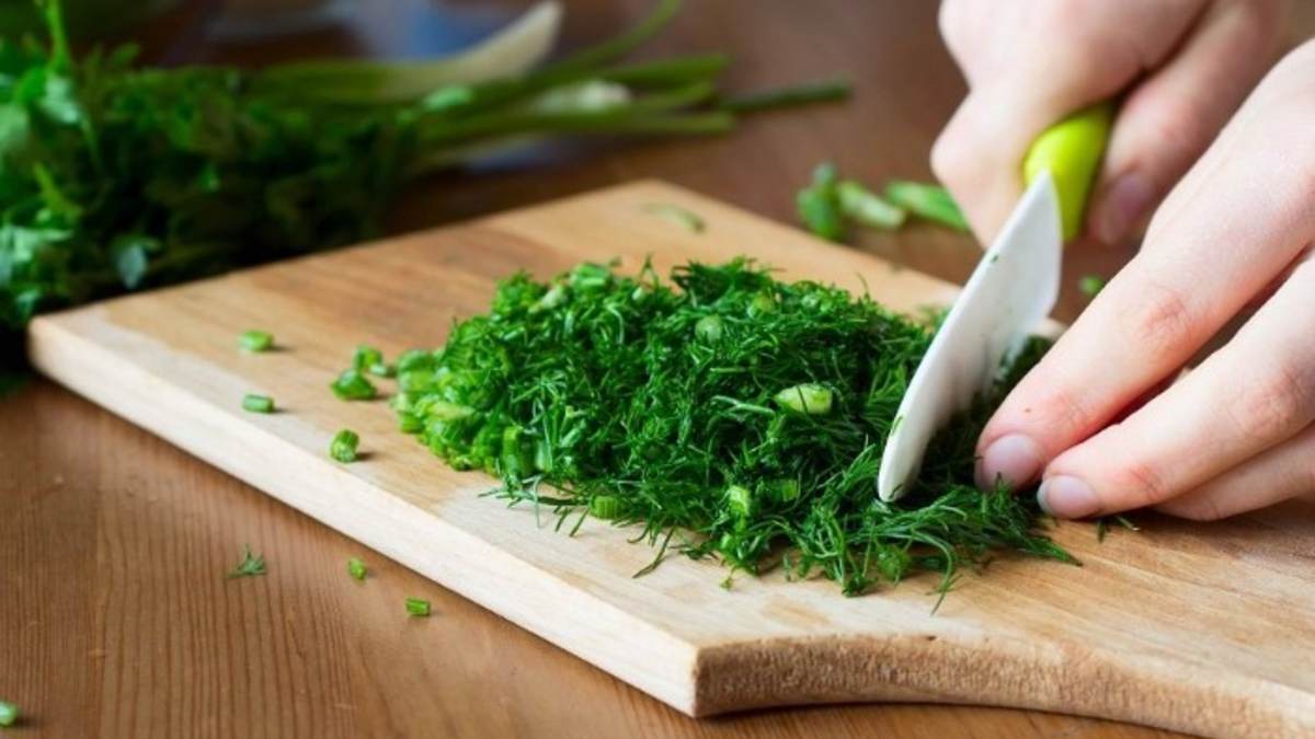 Posiekaj zioła. Najlepiej użyć mieszanki pietruszki, koperku i kolendry.