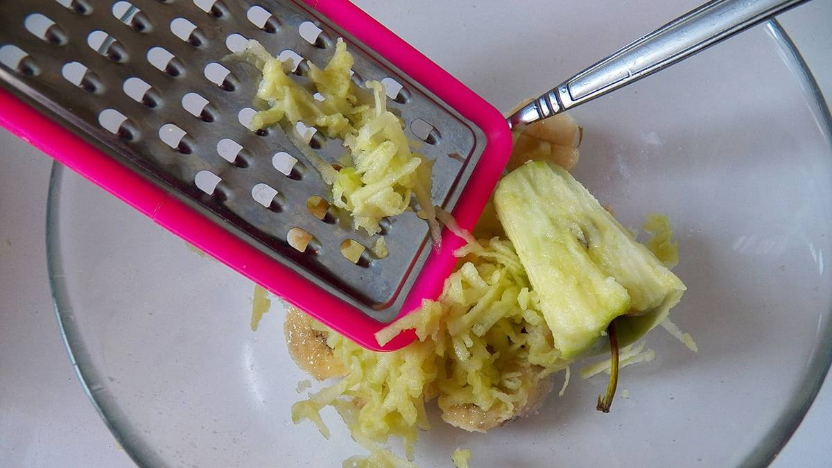Zetrzyj słodko-kwaśne jabłko na tarce. Możesz je obrać, ponieważ nie będziesz potrzebować skórki.