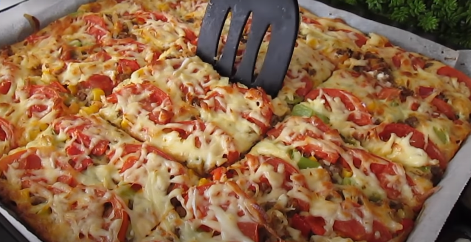 Domowa pizza dla leniwych kobiet: bez ugniatania, wystarczy wylać ciasto, przykryć, a cała rodzina je z jednej blachy