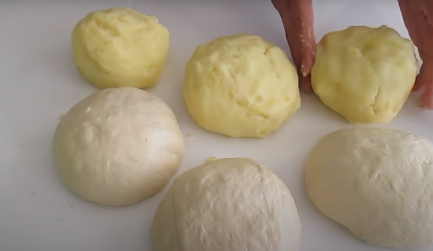 Jeśli chcesz zrobić chlebek z nadzieniem, podczas gdy Twoje ciasto rośnie przejdź do jego przygotowywania („przygotowanie nadzienia”). Ciasto podziel na trzy równe partie i rozwałkuj je na blacie posypanym mąką, następnie uformuj je w kulki.