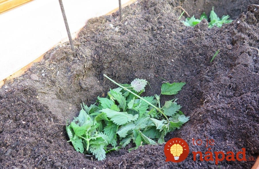 Wystarczy wykopać dziurę, włożyć do niej świeżo zerwaną pokrzywę, przykryć ziemią, umieścić przeszczep bokiem, a następnie przykryć ziemią i odrobiną kompostu.