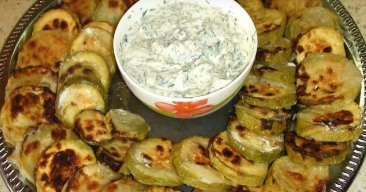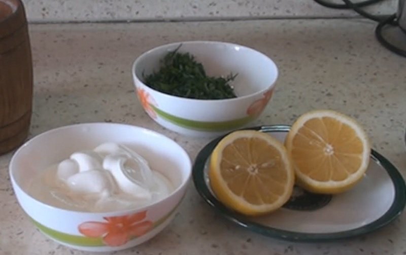 Dopraw cukinię przyprawami, a także skrop ją olejem. Włącz piekarnik, rozgrzej go do 150 stopni, a następnie piecz w nim cukinię przez 25 minut. Czosnek przeciśnij przez praskę, a następnie wymieszaj go z ziołami, śmietaną i sokiem z cytryny.