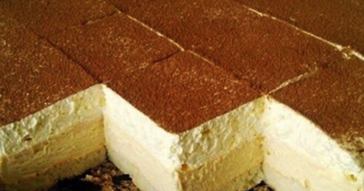 Przed podaniem włóż ciasto do lodówki. Schłodzone będzie smakowało wyśmienicie. Na wierzchu możesz posypać je tartą czekoladą lub kakao. Smacznego!