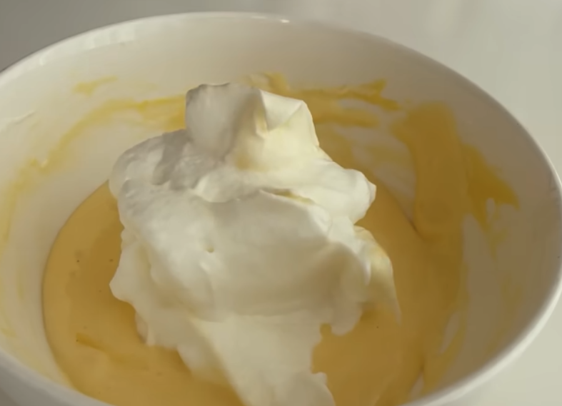 W misce wymieszaj 2 żółtka z 25 g mleka. Dodaj 10 g cukru i 1 g ekstraktu waniliowego. Dobrze wymieszaj. Dodaj 40 g mąki i wymieszaj do uzyskania gładkiej masy. Oddziel białka od żółtek, uważając, aby żółtko nie dostało się do białek. Ubij białka na dużą pianę.