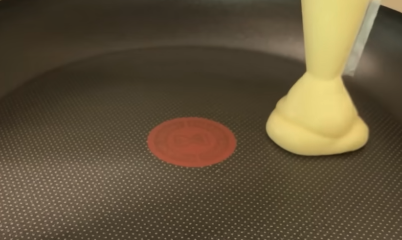 Włóż ciasto do szprycy lub użyj łyżki, aby nakładać ciasto na patelnię. Wylej ciasto na patelnię, aby uzyskać grubsze racuszki. Po 2 minutach gotowania dodaj więcej ciasta na naleśniki. Wlej 1 łyżkę wody do pustej przestrzeni patelni, przykryj patelnię i gotuj przez kolejne 2 minuty.