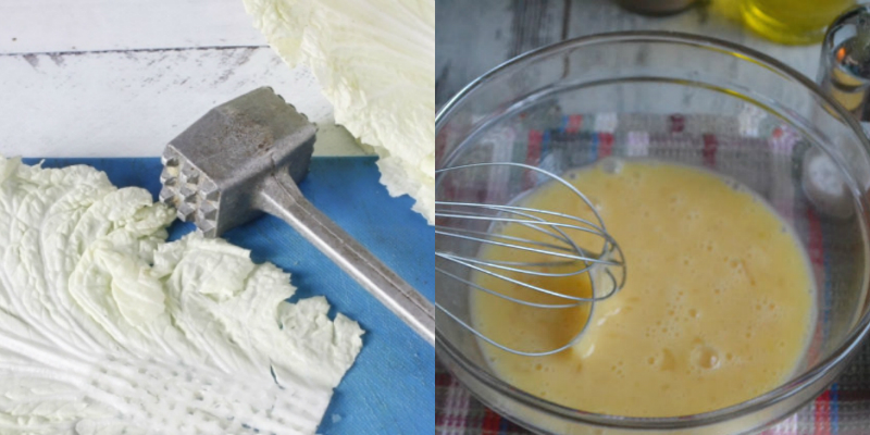 W czasie zakupów należy zwrócić uwagę, by kupić główkę kapusty pekińskiej z jak największą liczbą rozłożystych liści, z których będzie wygodnie formować roladki. Z główki kapusty oddzielamy liście, ich najtwardszy element rozbijamy tłuczkiem bądź delikatnie ścinamy nożem.