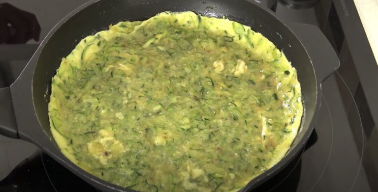 Jajka wbij do miski, dopraw solą i pieprzem, dodaj cukinię z patelni.