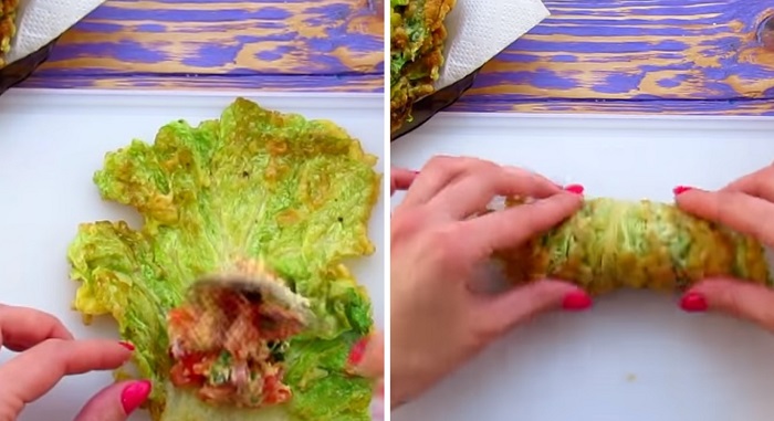 Po usmażeniu odłóż liście na ręcznik papierowy, aby pozbyć się nadmiaru tłuszczu.