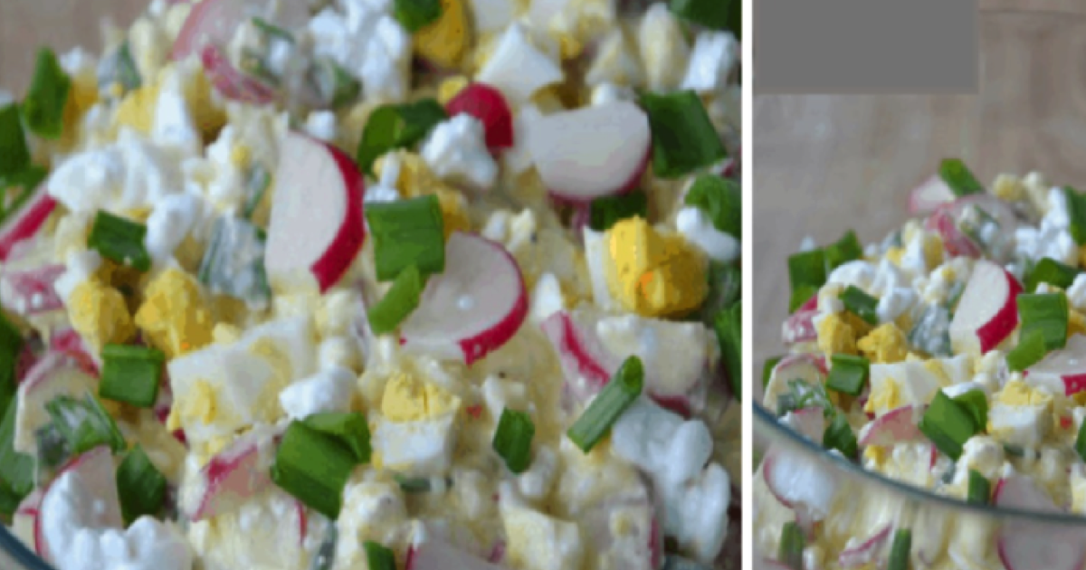 Wymieszaj musztardę z twarogiem, następnie pokrój w drobną kostkę cebulę. Rzodkiewki umyj, osusz i pokrój w półksiężyce. Szczypiorek drobno posiekaj. Następnie umieść wszystkie składniki w sporej wielkości misce, dopraw solą i pieprzem. I gotowe!