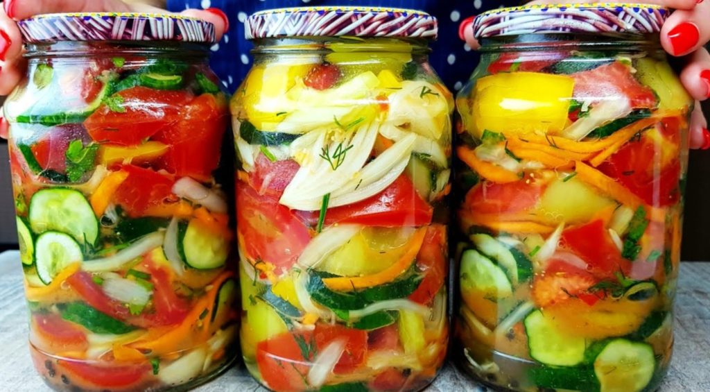 Dobrze zakręć słoiki i włóż je do dużego garnka wyłożonym na dnie bawełnianym ręcznikiem i zalanym ciepłą wodą. Kiedy woda zacznie wrzeć słoiki sterylizuj przez 25 minut. Następnie należy obrócić słoiki do góry dnem i owinąć w ciepły koc aby ostygły. Przechowuj sałatkę w chłodnym miejscu, na przykład w piwnicy lub spiżarni.