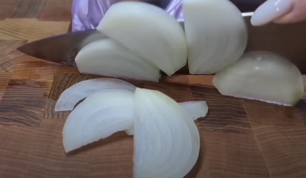 Krojenie cebuli powinno odbywać się na półpierścienie.