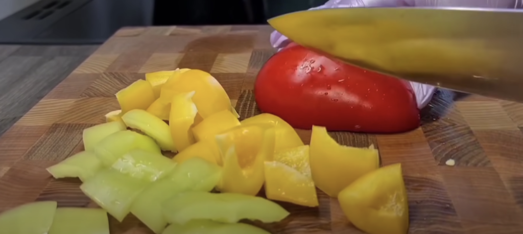 Ostra papryka powinna być pokrojona w drobne kawałki, a słodka – w paski.