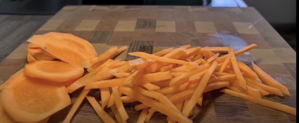 Staraj się marchewkę zetrzeć na grubej tarce lub, alternatywnie, pokrój ją w paski. Dla atrakcyjności kolorystycznej wykorzystaj papryki w różnych kolorach.