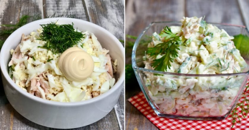 Ale produkt z kurczaka sprawi, że sałatka będzie bardziej delikatna. Zwróć uwagę na ogórek. Jeśli skórka jest gorzka, lepiej ją odciąć. Nawiasem mówiąc, zimą świeże ogórki można zastąpić solonymi.
