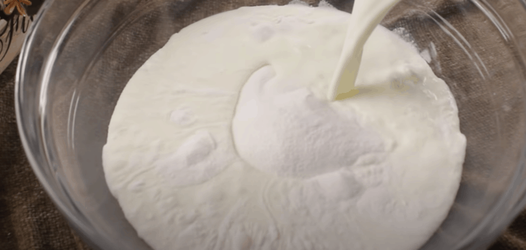 Przygotujemy większą miskę. Do miski wsyp bitą śmietanę, dodaj mleko i ubij.