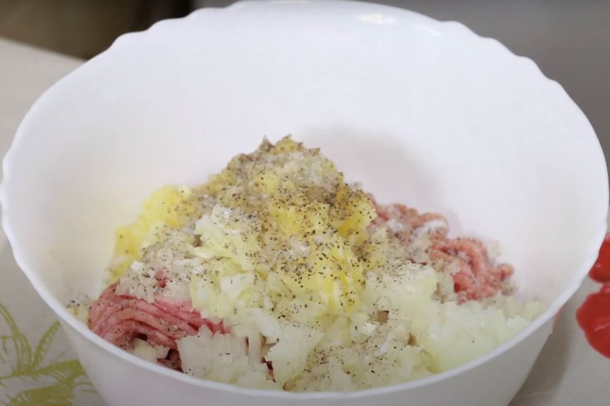 Cebulę drobno posiekaj, dodaj do mięsa mielonego. Zmiel pozostałą cukinię w blenderze i dodaj również do mielonego mięsa.