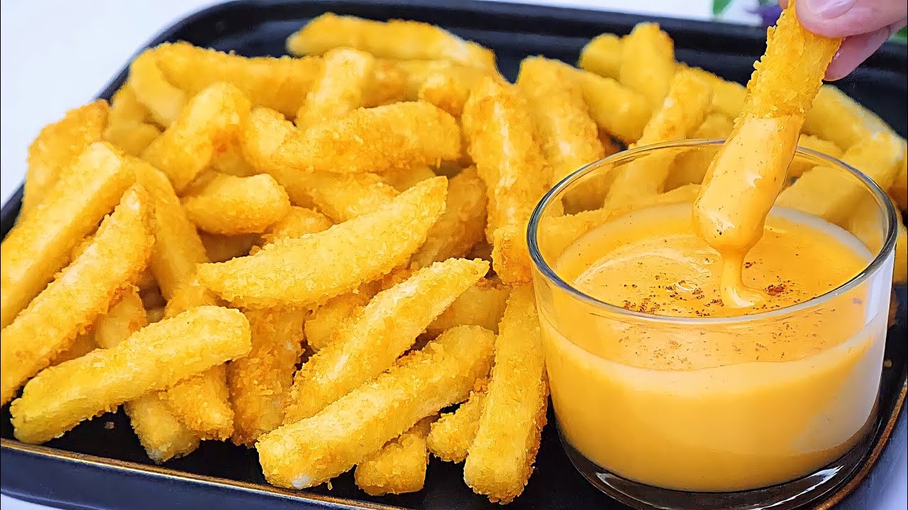 Przepis na Chrupiące Smażone Frytki Ziemniaczane z Sosem Serowym