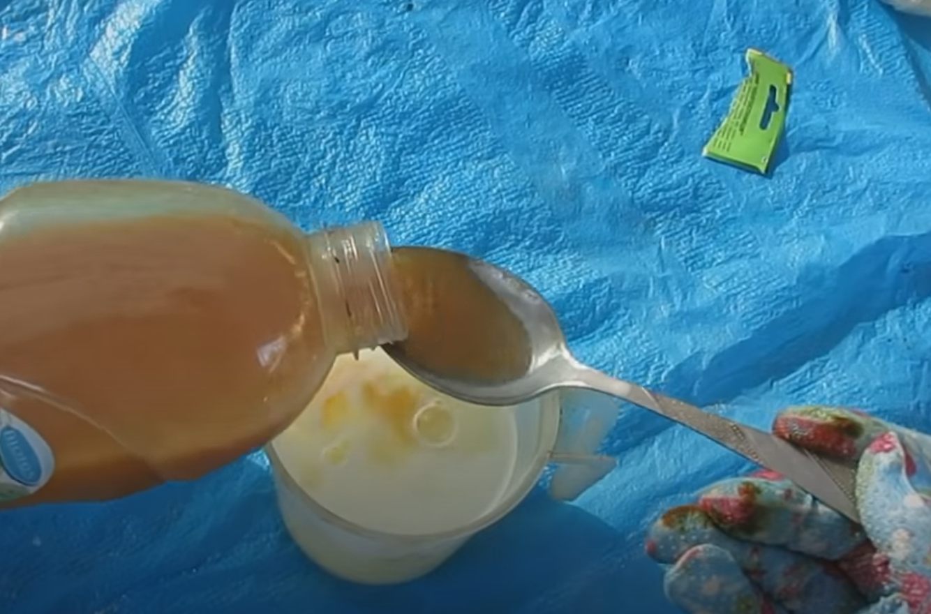 Wsyp 1 łyżeczkę jodu. Na koniec dodaj 2 łyżki mydła w płynie. Wszystko dobrze wymieszaj, aby poszczególne składniki się połączyły.