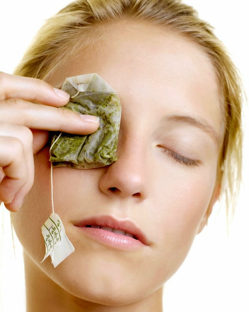 Czarna i zielona herbata oraz rumianek mają dobroczynny wpływ na naszą skórę. Wzmacniają ją i tonizują. Torebki z herbatą zalej ciepłą wodą.