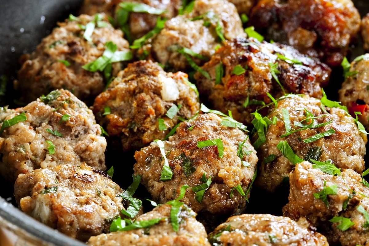 - Kolacja: Pulpety 180 g mielonej wołowiny z białkiem i kilkoma łyżkami bułki tartej, udekoruj brokułami i połową jabłka.