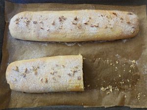 Z wyrośniętego ciasta rozwałkować arkusz, posypać odrobiną bułki tartej i przykryć grubo startymi jabłkami. Jeśli są bardziej kwaśne, posyp je cukrem, ale nie jest to konieczne. Jabłka posyp rodzynkami, a na końcu cynamonem i zwiń ciasto w ciasną bułkę. Z podanych składników na dwa strudle.