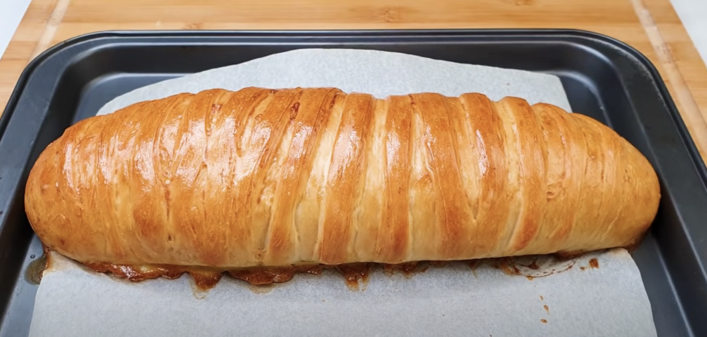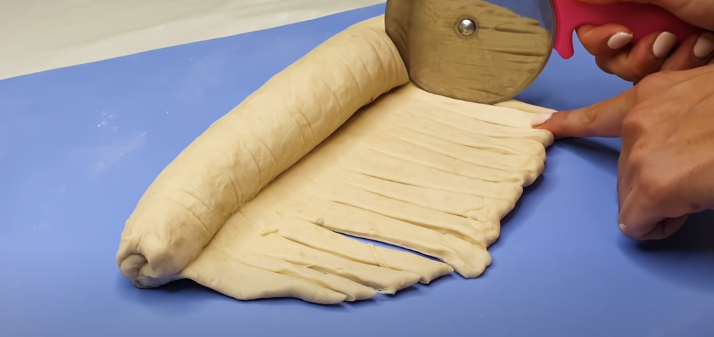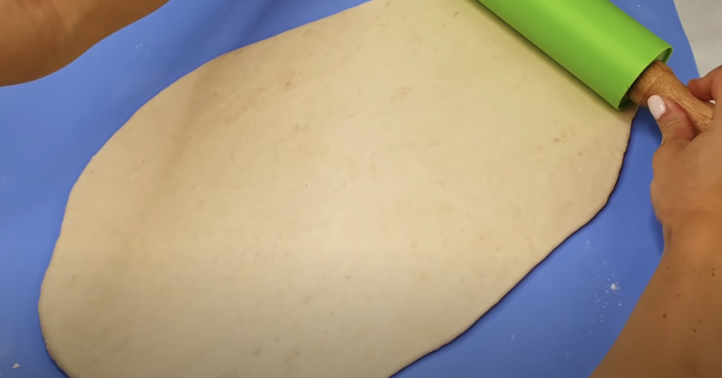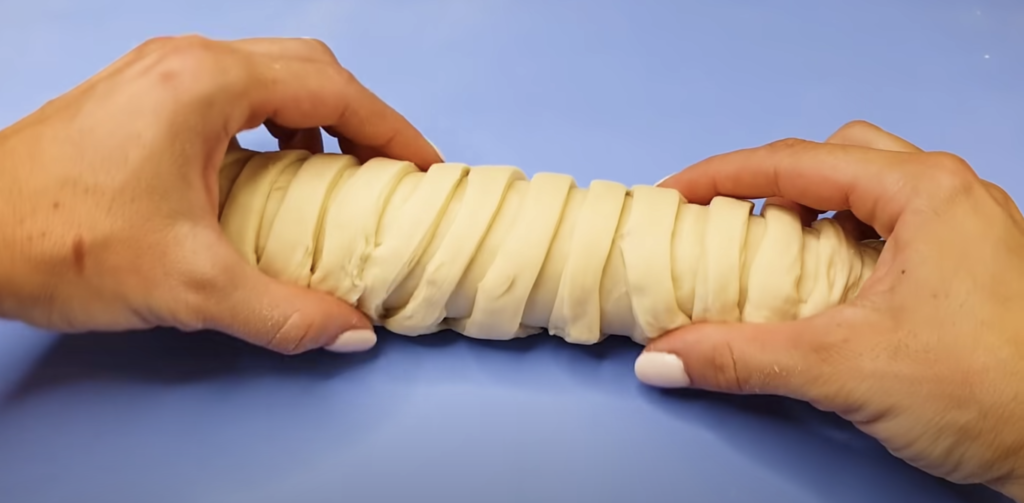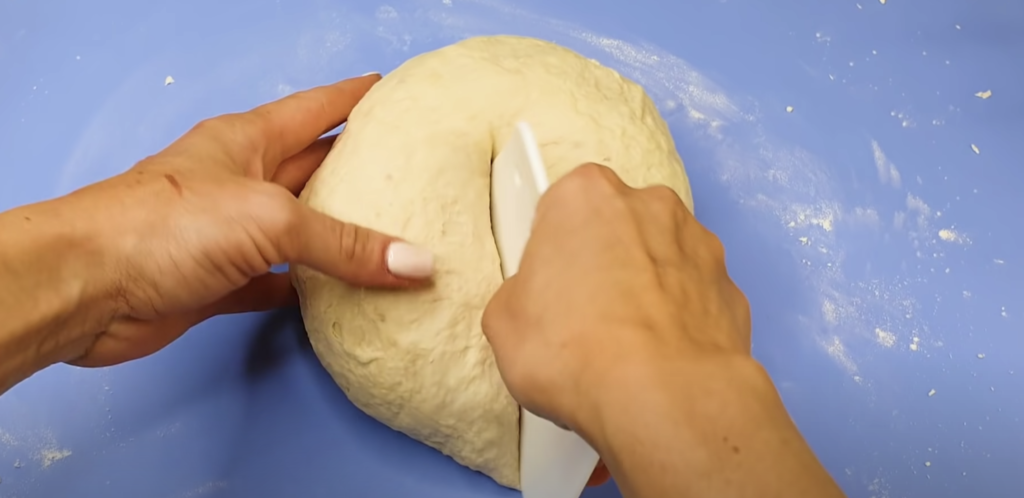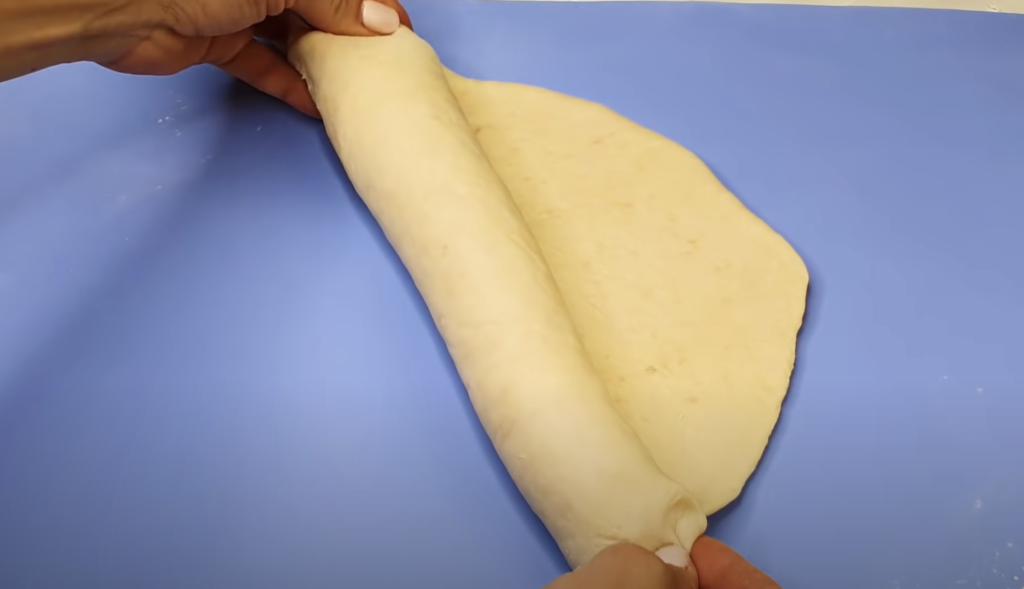 Wyrobione ciasto podzielić na dwie części, z czego jedną z nich zawinąć w kształt przypominający nieco owal.