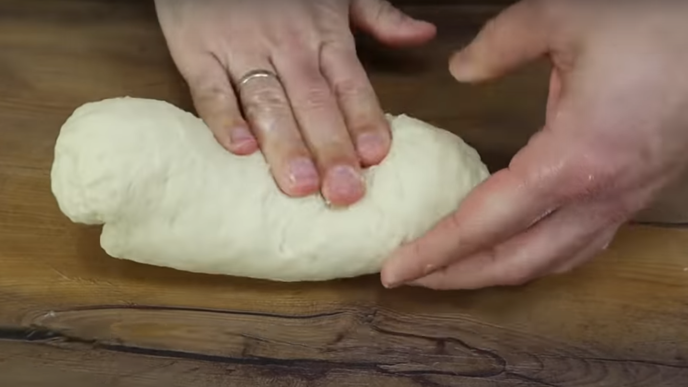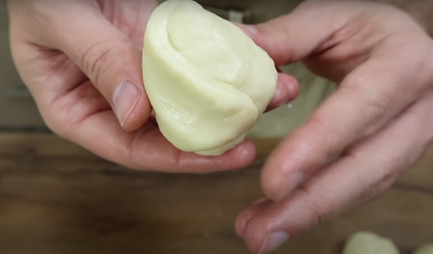 Na początku w misce wymieszaj jogurt z olejem i wodą. Dodaj białko, następnie sól, cukier oraz sok z cytryny. Delikatnie połącz składniki. Mąkę przesiej z proszkiem do pieczenia i delikatnie wmieszaj w jogurtową masę. Pod koniec dodaj miękkie masło i zagnieć elastyczne ciasto. Ciasto przykryj ściereczką i odstaw je na 10 minut.