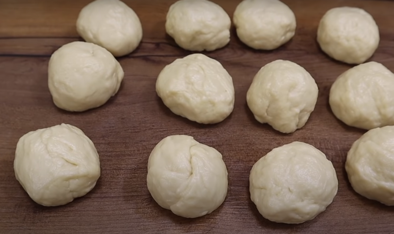 Na środku każdego nałóż odrobinę nadzienia i zwiń w kulkę.
