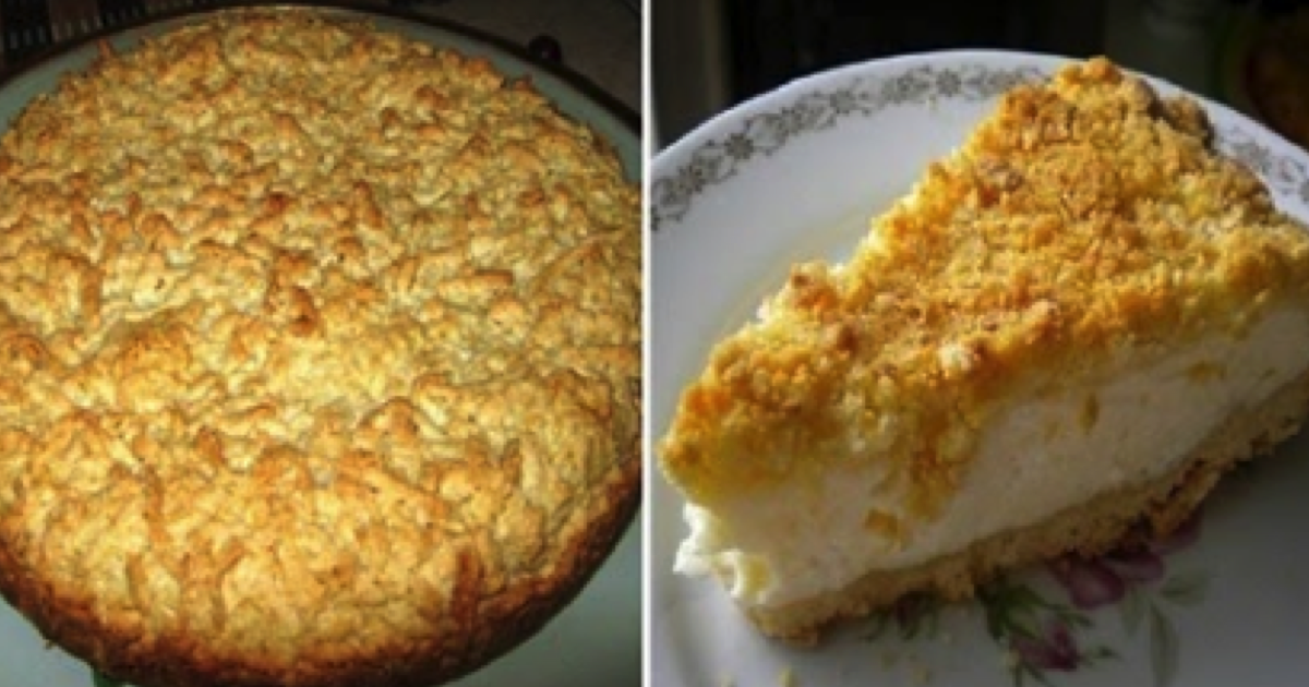 Następnie wylej na blachę masę twarogową, rozprowadzać równomiernie łyżką. Następnie na masę zetrzyj pozostałą część ciasta.