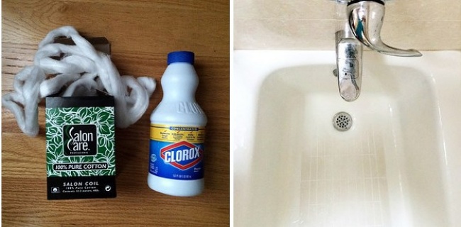 Umieszczenie nasączonych w wybielaczu bawełnianych kulek wzdłuż krawędzi wanny na noc pomoże Ci osiągnąć śnieżnobiałą wannę.