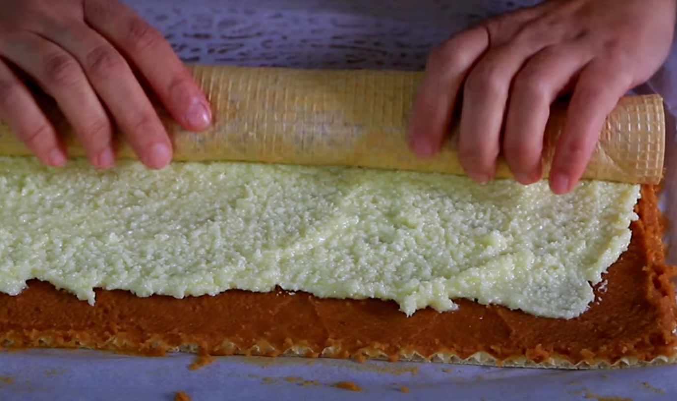 Zawiń roladę w papier do pieczenia i przechowuj w lodówce do zestalenia.