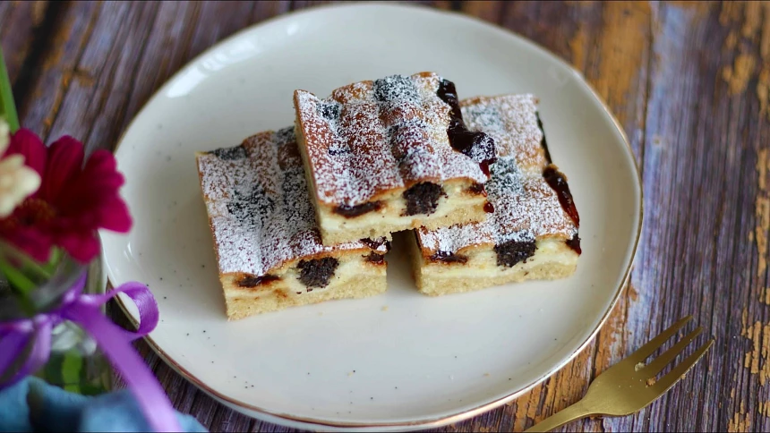 Piecz w piekarniku rozgrzanym do 180°C. Na blasze z papierem do pieczenia wylej 2/3 ciasta, na to równomiernie rozprowadź nadzienie twarogowe. Dżem i mak wlej do osobnych torebek, narysuj grubsze linie dżemu obok siebie, pomiędzy nimi umieść mak. Przykryj resztą ciasta w zygzakowym wzorze. Część nadzienia powinna być widoczna.