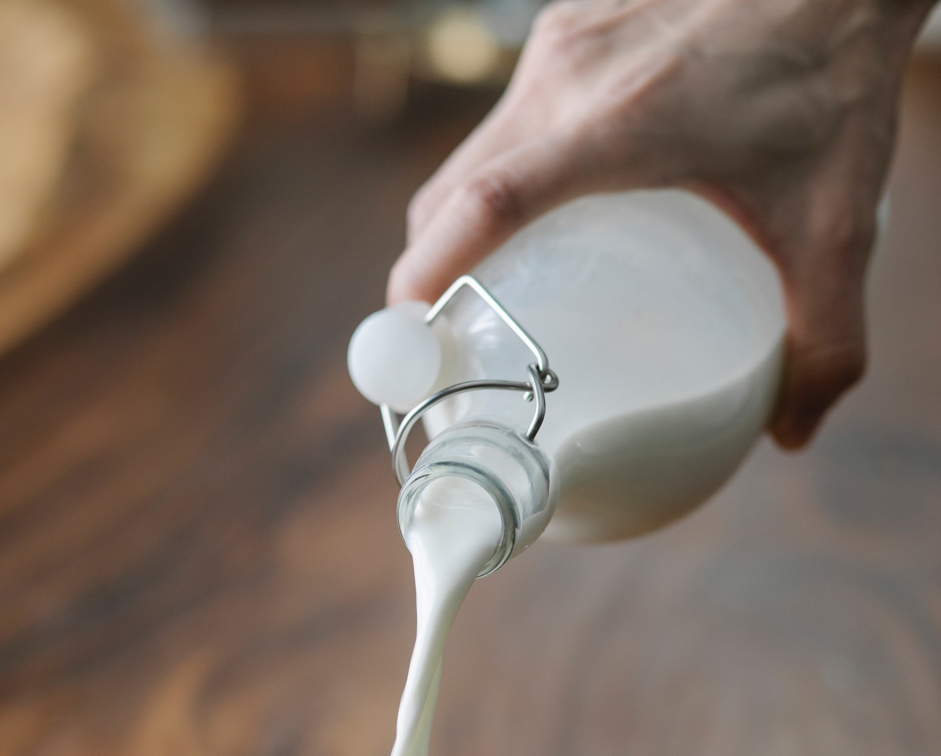 Wymieszaj płynne składniki – mleko i olej. Teraz stopniowo przesiej mąkę i proszek do pieczenia do mieszanki. Wymieszać jednolite ciasto.