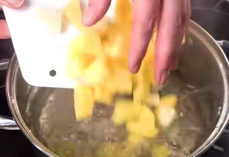 - Odcedź ziemniaki i odstaw do lekkiego ostygnięcia.