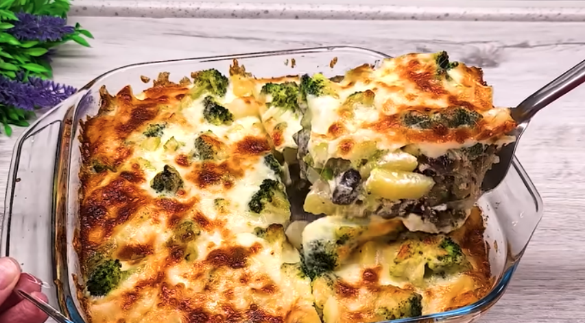 Dziś przygotujemy pyszne danie z ziemniaków, brokułów i grzybów zapiekanych w kremowym sosie.