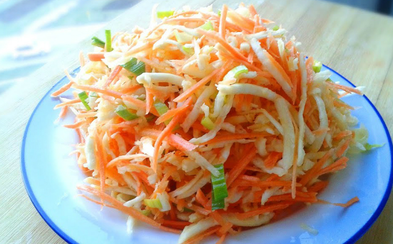 Kolacja: 250 g sałatki z warzyw korzennych (starty seler, marchewka) i jabłka skropionej sokiem z cytryny i oliwą z oliwek, 2 kromki chleba z otrąb