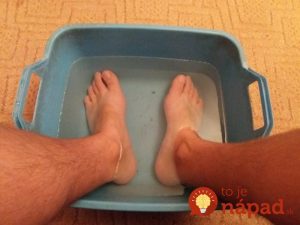 Kąpiel dla zmęczonych i obolałych stóp wymaga 2-3 l gorącej wody, startego mydła z ziarnami, garści sody oczyszczonej z solą morską i 10 kropli jodu. Stopy moczymy przez 15 minut, a po kąpieli zakładamy bawełniane skarpetki.